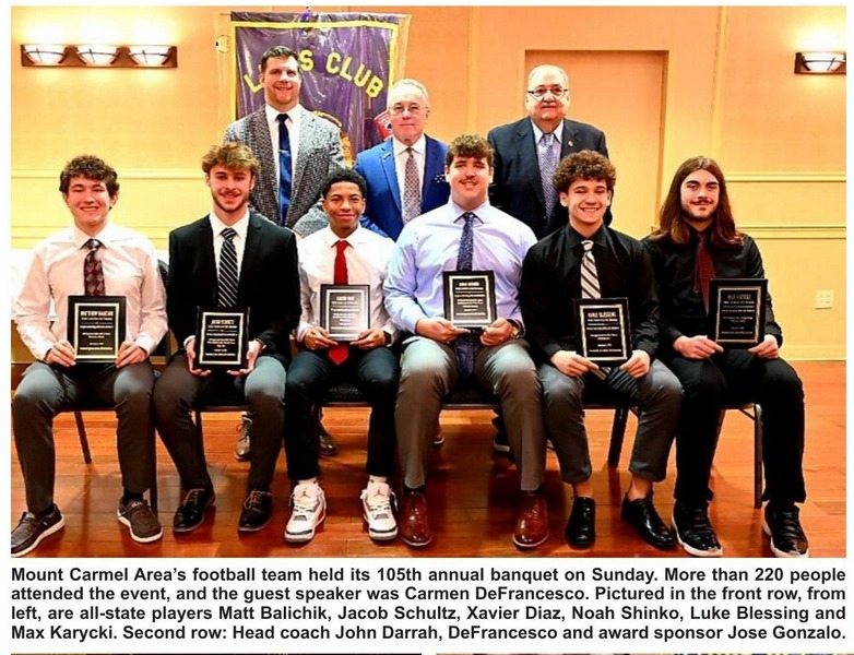The 62nd Annual Mike Terry Awards were presented as part of the Lions' Sponsored 105th Annual Mount Carmel Football Banquet on Sunday, February 4, 2024 at 1:00 PM at the Brady Banquet Hall.